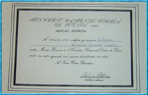 Concurso Raimundo Correa de Poesia 1983 Menção Honrosa A