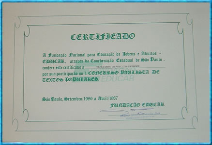 no Concurso de Poemas. Ourinhos-SP 10/12/1991