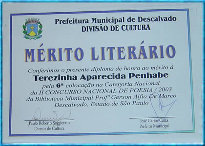 recebeu Menção Honrosa, sendo sua autora agraciada