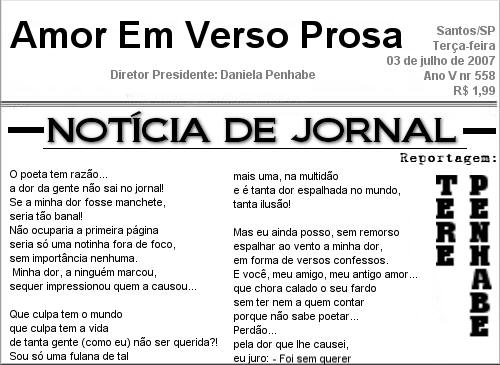 El poeta tiene razón... el dolor de la gente no sale en el periódico! Si mi dolor fuera titular, sería tan banal! No ocuparía la primera página sería sólo una notita fuera de foco, sin importancia ninguna. Mi dolor, a nadie marcó, siquiera impresionó quién a causó...